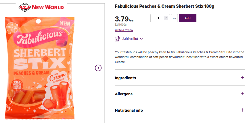 This new Peaches and Cream one doesn’t have ‘limited edition’ printed anywhere that I can see, so that might mean this is another flavour added to permanent rotation. I am a big fan of this idea actually, can we please just keep adding flavours every 6 months or so until we need an entire aisle in the supermarket dedicated solely to sherbert stix? This is a dream of mine.